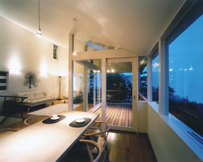 1992年に建てられた住宅の増改築。1992年当初は親世代と子世代の「同居」のための家であったが、今回の増改築では「同居」でもなく「2世帯住宅」でもない、その中間的な「2世‟代”住宅」を目指した。近年は核家族化により同居が好まれない傾向がある一方で、都心では2世帯住宅とするための十分な土地がない。この「2世‟代”住宅」では玄関や水廻りは分けつつもダイニングを共有することで、それぞれの生活スタイルやプライバシーを保ちながら互いの気配を感じることができる。さらに外部には性格の異なる2つの中庭があり、当初からあったコンクリート打ち放しの2階の中庭は子世代、新たに設けた緑豊かな1階の中庭は親世代の中庭となっている。これらの中庭は外階段で立体的につながり、ほどよい距離感の憩いの場所となっている。ものであふれ、そして核家族化が進む現代だからこそ、古くからある家を生かして世代を超えて住み継ぐことを大切にし、ライフスタイルの変化に合わせて柔軟に対応していける住宅を目指した。
