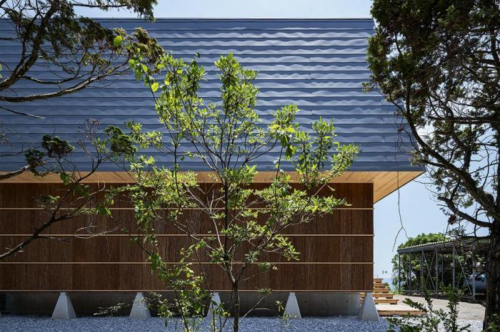 東南アジアに似た南国高知の気候を視覚的にも感じられるように、建物は高床式の大屋根を採用し、外壁には自然豊かな周辺環境と調和する杉皮を使用しています。