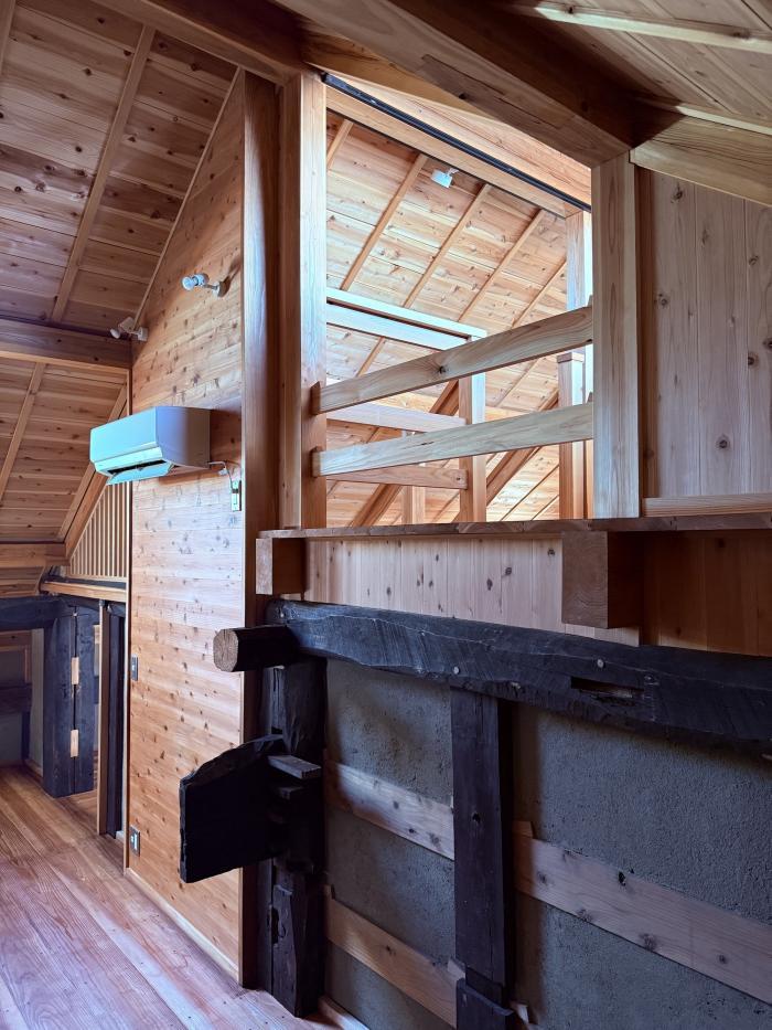 古材に新しい材を大工が手刻みで加え、DIYの小舞土壁に左官職人による土塗りや漆喰を施して仕上げました。
