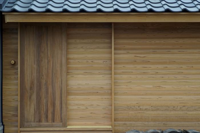 素材は極力自然素材を使用し、内壁は珪藻土、外壁は杉、屋根は瓦葺きとしている。