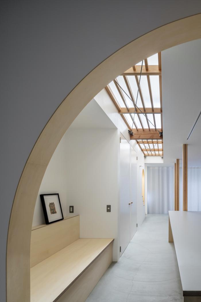 光と風の届く拠り所のあるワンルーム空間を、日々時々の営みに合わせて編集しながら住みこなしていく、光を編む家。そんな懐の深い住まいが実現した。
