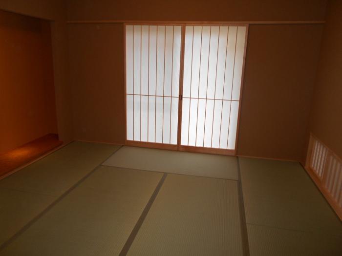 エアコンは置きタイプとし、障子は2本共壁の位置に収納。又違った雰囲気が味わえる。