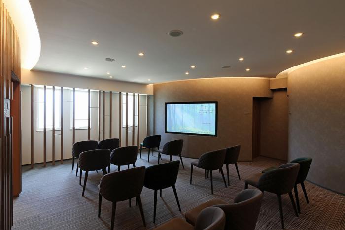 【トモニこころのクリニック】は今年の5月に開業を迎えた小平市の診療内科・精神科のクリニックです。院長のめざす医療のテーマ「森の中を患者とともに歩み、明るい開けた場へと導く」というイメージと呼応するように、空間を形づくりました。診察室を木の幹に見立てて分厚い木の格子で包み込み、その幹の中で、落ち着いて、心の中の世界と出会えるように考えました。木の幹のまわりをロビーや待合が取り囲み、森の中を巡るような空間としました。この森の空間から、木の幹にあたる診察室へと入ると、正面のサンルームから明るい光が届き、心が自ずと開かれるような構成としています。