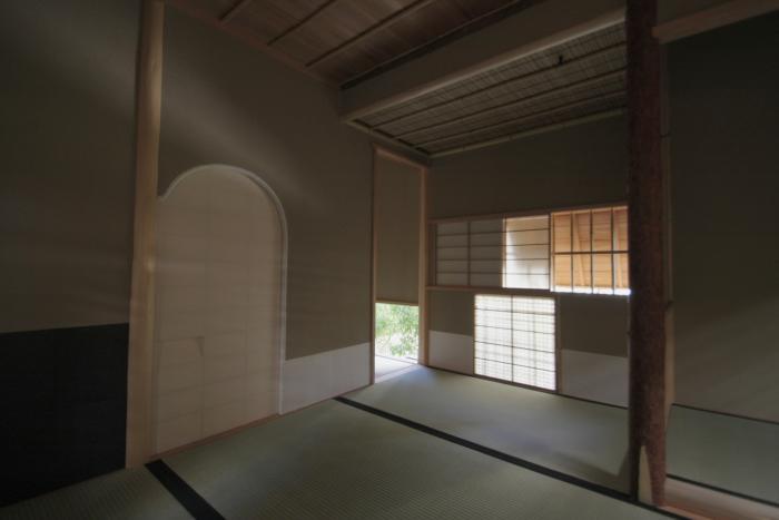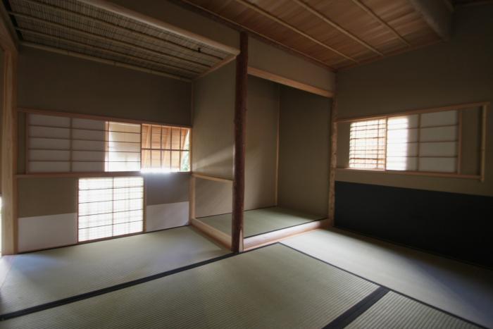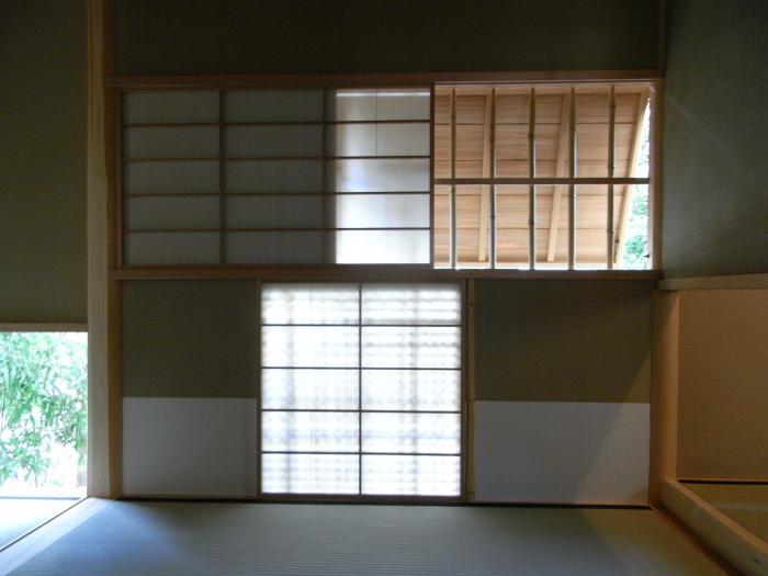 和室は、最近ではあまり作られなくなりました。座から立への動作に労力がいることから老人にもあまり好まれなくなったようです。しかし、畳の温かく清潔な感触はとてもよいものです。気候の良いときに風を通して寝そべっているととても気持ちの良いものです。写真はごく普通の一般的な和室です。ただお茶を教えているこの部屋の主のために炉が切ってあります。廻り縁や真壁風の納まり、竿縁の天井、漆の床框の床の間、オリジナルの襖、障子、和紙の壁など、皆様の思い描く普通の和室です。建物は木造のツーバイフォーの住宅なので、工夫をして真壁風に拵えました。