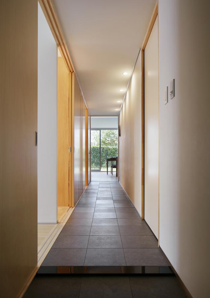 築18年のマンション住戸のリノベーションです。寝室と廊下の間の壁を撤去し、10枚の連続引戸を挿入しました。引戸は開いても閉じても邪魔にならず、少しずつ開け閉めでき、周辺環境との繋がり方の調整弁となります。 |