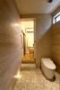 旗竿地に建つ、狭小エステ併用サロンです。建坪9坪ながら、サロン用のラバトリーにはトイレ・シャワーブースを設け、ラグジュアリーな空間を体験していただけます。ご希望だったヨーロッパのスパのイメージを叶えるため、大理石モザイクや石、しっくいなどを多用しました。