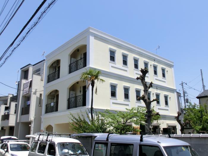 敷地面積に対して小ささを感じさせない外観、存在感のある建物です。