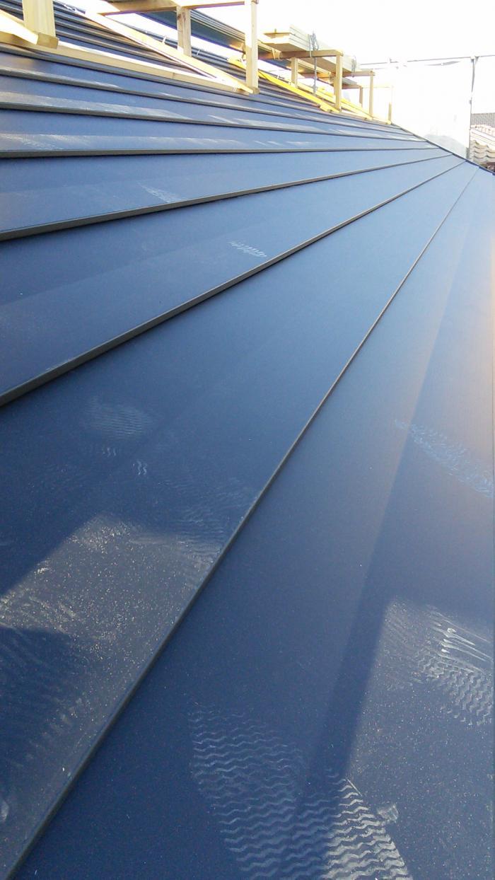 外部では、板金屋さんが、屋根を葺いてくれていました。