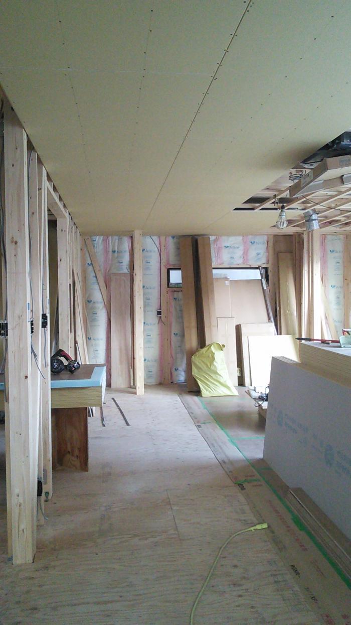 外部は外壁が張られて、いい感じ。