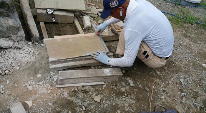 庭園「外構」・・・庭工事の進行途中、要塞としての家の佇まいと見える風景、隠す視界のデザインを「カタチ」にする屋内のLDKや階段、ホールや縁側・・・浴室から見える風景の心地よさと佇まいのバランス。