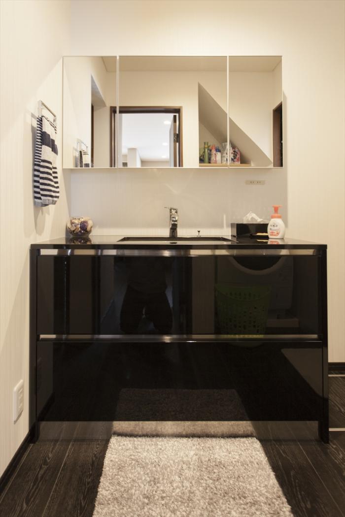 艶のあるブラックの洗面台とも