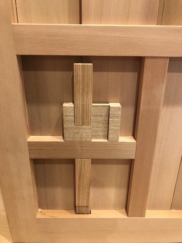 一筋は米檜、鴨居、雨戸は米杉、サル落しは建具屋さんが操作性、耐久性を考えタモにしてくれた。