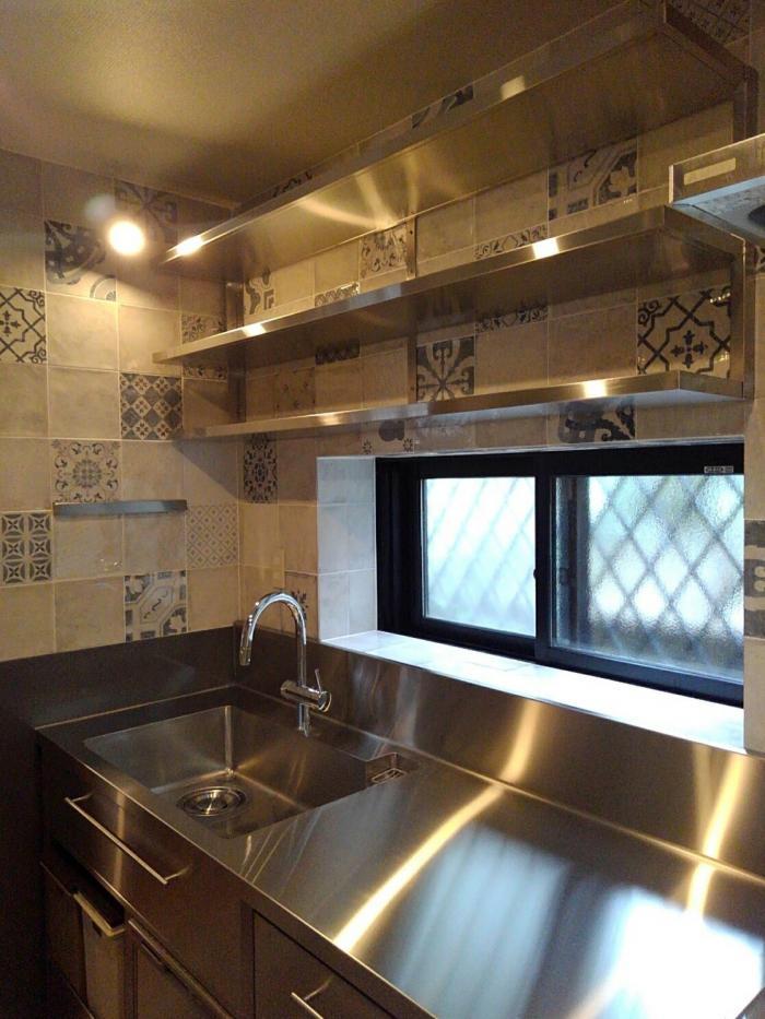 ちなみに写真は、私どもの設計事務所で設計監理をしたリフォーム住宅で、工事の規模はそれほど大きくなく、キッチンとパントリーが中心でしたが、建て主さんのこだわりでオールステンレスのオーダーメイドキッチンと特徴的なタイルを希望されていたため、キッチン製作会社の方も交えて何度も打合せを重ね、タイルの貼り方も色々と検討し、工事を請け負う建設会社も私どもでご紹介させていただきました。