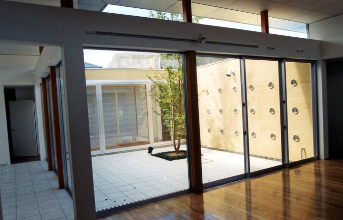 以前に私どもが設計監理をした「中庭のある平屋住宅」では、家の真ん中に中庭を設けたロの字型のコートハウス(コートとは中庭の意味)で、回廊のような回遊動線を配して、玄関ホールからグルっと一周して再び玄関ホールへ戻るようなプランにしました。