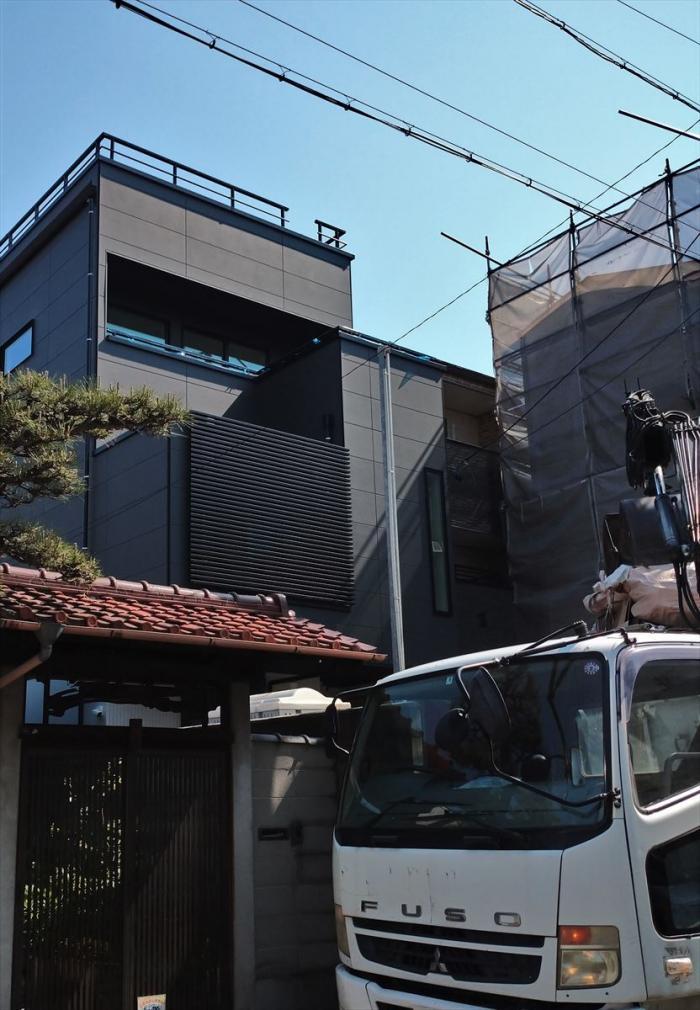 マットなブラックの外壁は、お客様のこだわりの一つ。