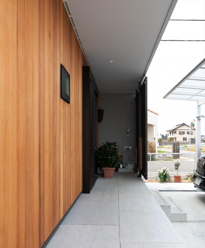 駐車場から玄関への裏動線(家族用アプローチ)です。