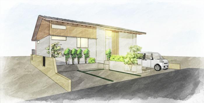 敷地がやや低地のため1mほど住宅はかさ上げしてあります。
