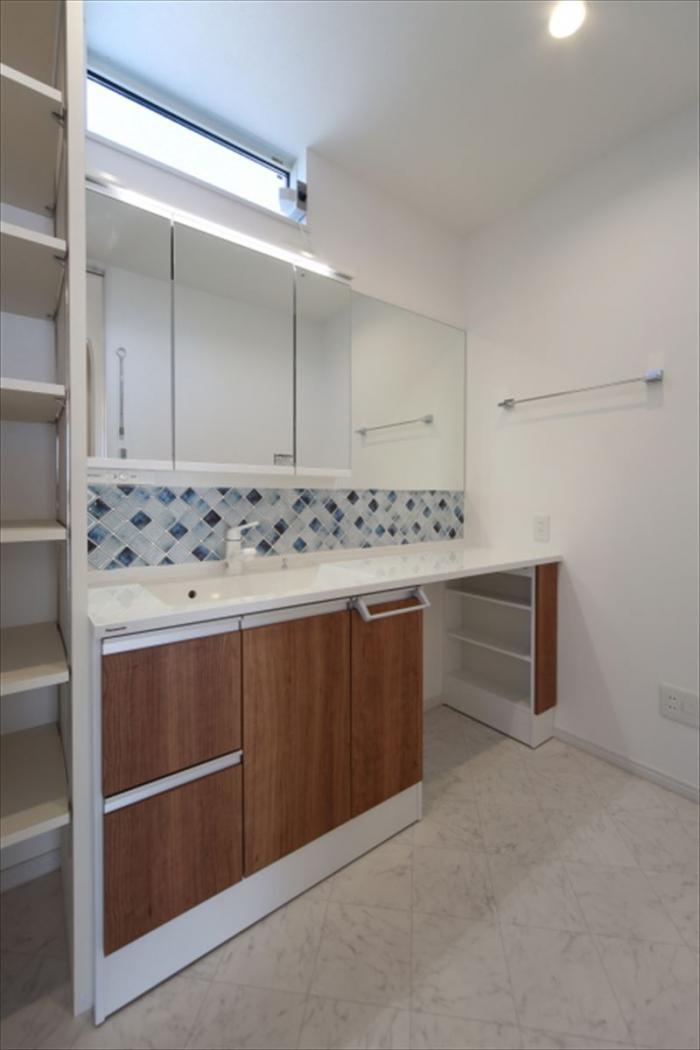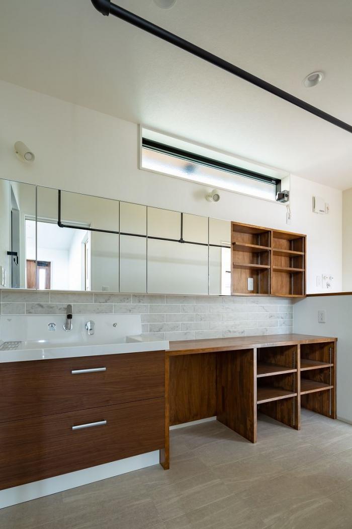 設計段階で、すべてを造作の洗面にする