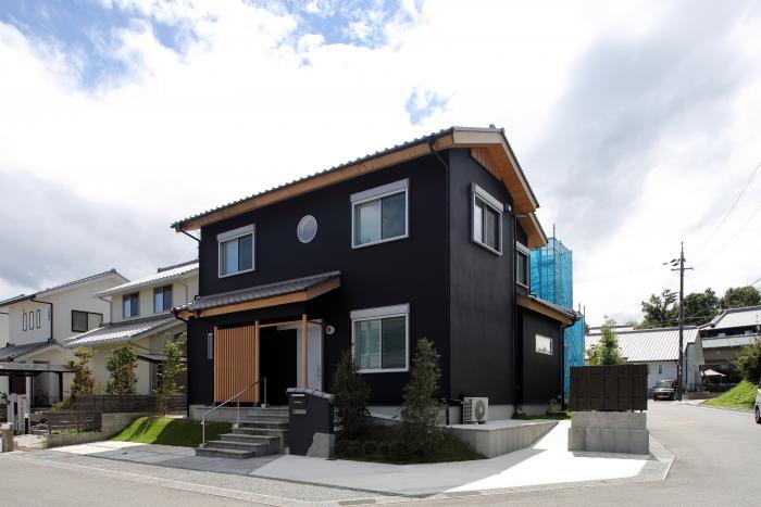 奈良県明日香村の住宅地に佇む黒い家。