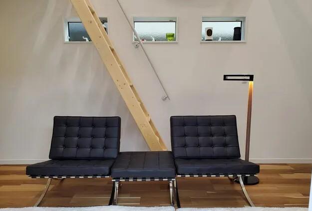 ※シンプルモダンな空間にレイアウトした使われる芸術品「バルセロナチェア」