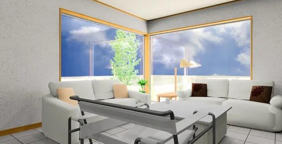 ※LDK空間のデザイン設計提案CG過去事例(家具レイアウトと窓の存在への意識を提案)