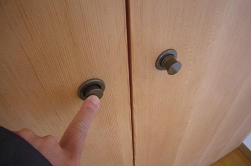 そのため、扉を開閉する際の取っ手(ツマミ)も写真のような小さな「プッシュツマミ」にしました。