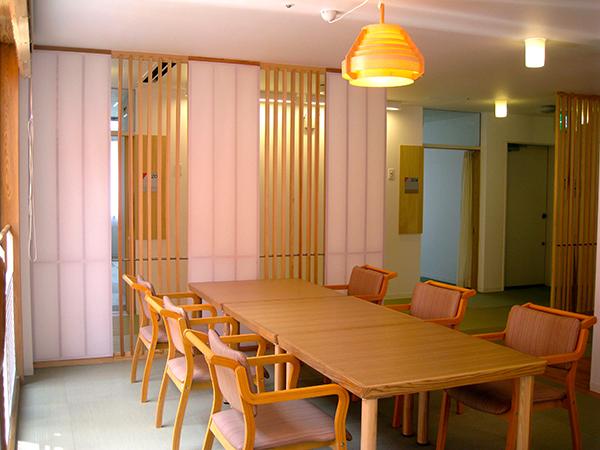 写真の事例は障子を固定したもの(破れにくいワーロン紙など)をデザイン化した桟に貼ってインテリアの一部にしています。また、木のルーバーなども使います。
