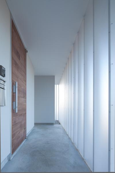 日中は外の光を柔らかく取り入れながら外の風景を閉ざしています。比較的プライバシーの高い空間ですね。
