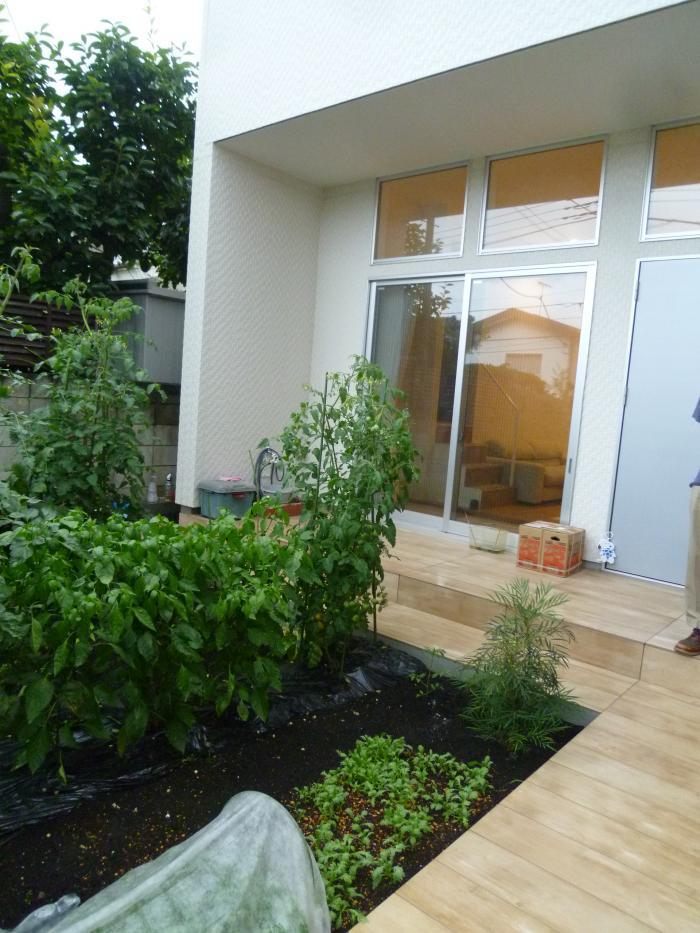 リビングの前に畑が見える配置は東京都内ではそうそうお目にかかれません。奥行方向に長い敷地で建て主が家庭菜園好きならではの状況ですね。