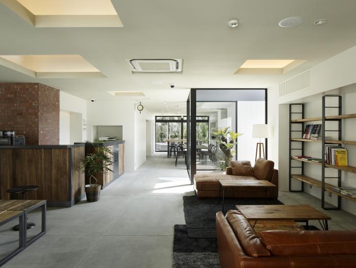 1階はRC柱梁構造として、コンパクトではあるが開放的な共用スペースとなっている。