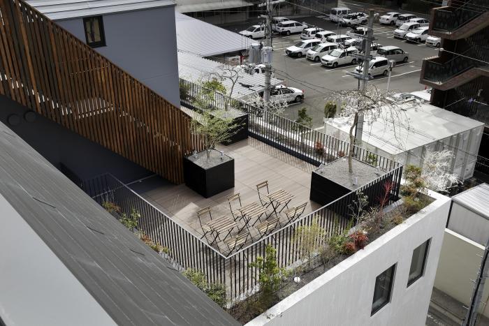 屋上テラス。宿泊客が自由に利用できる共用スペース。