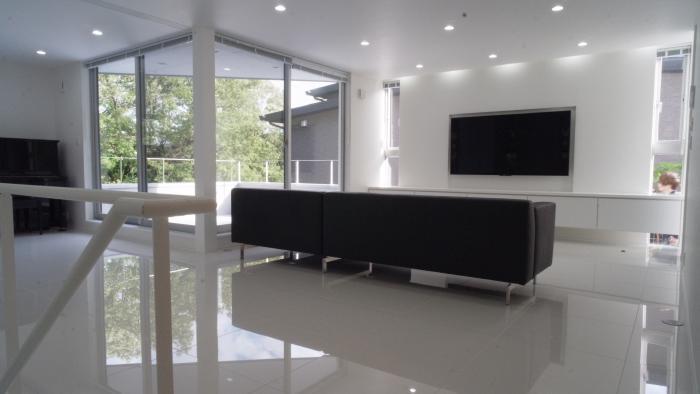 ■2か所の強固な基礎に橋のように渡しかけた住宅です。1階へ降りていく