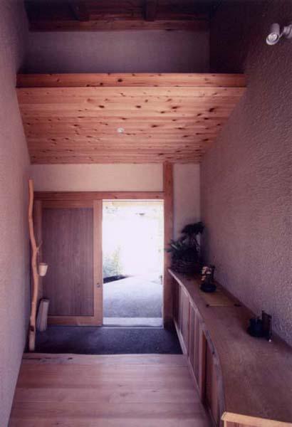 玄関ホールより玄関入り口を見る・下駄箱天板の栗は建主さんのお父様からのプレゼント