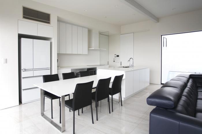 南側のすばらしい眺望をいかすため、リビングの南面は両端の出入り口を除き、全てFIXガラスとしました。