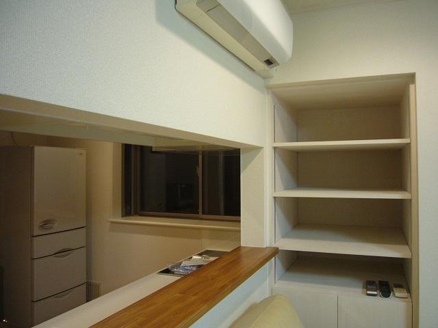 造り付け収納もすっくり収めて、出っ張らないように設計しました。