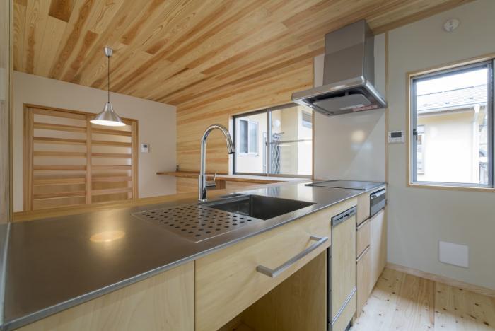 耐震性・耐久性は長期優良住宅と同じ等級2レベルで設計し、また建具はほとんどを引戸とし壁は必要に応じて手摺の取付が可能な杉材で仕上げて老後に備えました。