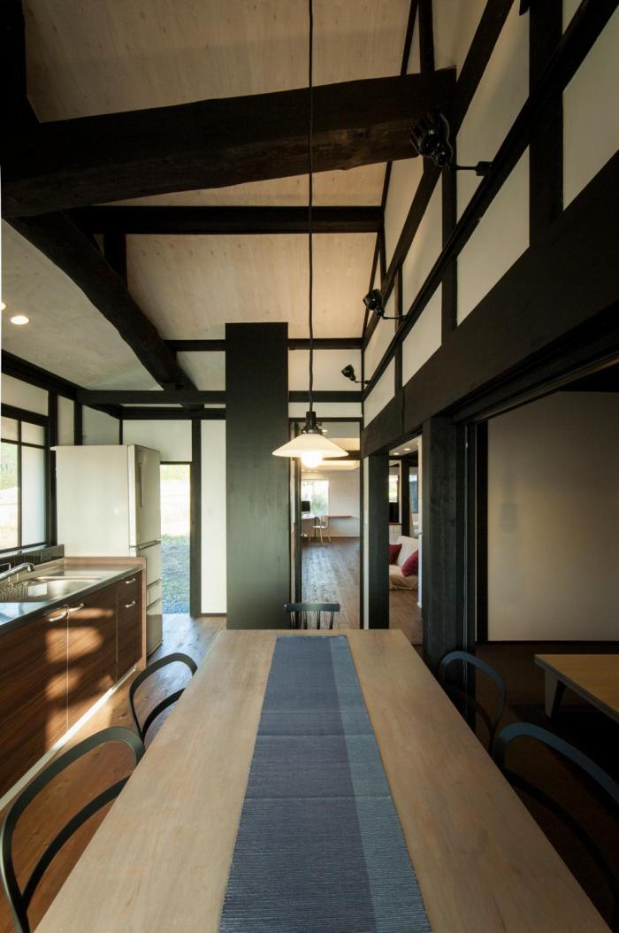 今回は和室には障子戸、その他の部屋にはレースカーテンを用いて空間を仕切り、古民家の良さを損なわないような構成とした。