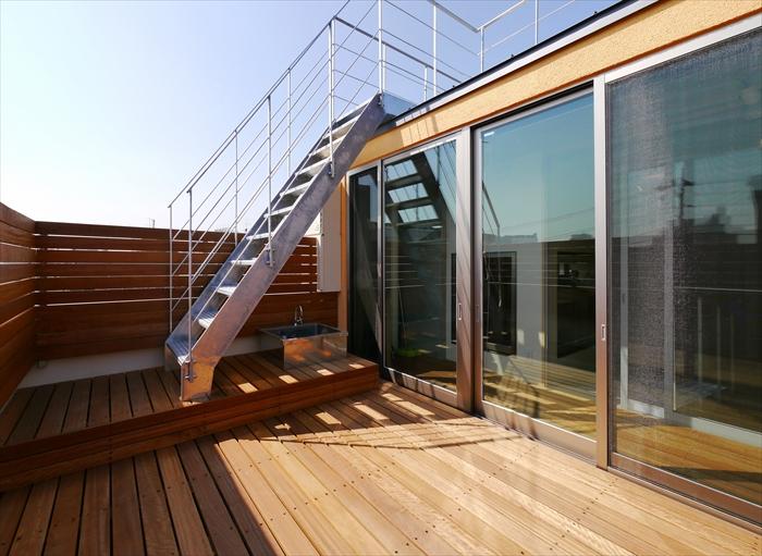 アーキスタジオ考案のアトリウムと空気循環システムで室内温度の安定した暖かく涼しい家です。