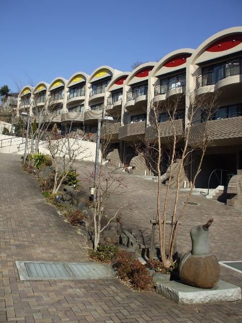 傾斜地に建つ集合住宅。メゾネット式。中央通路に添い芸術家の作品が点在し、住民の皆様の憩いの広場は癒しの空間となっています。