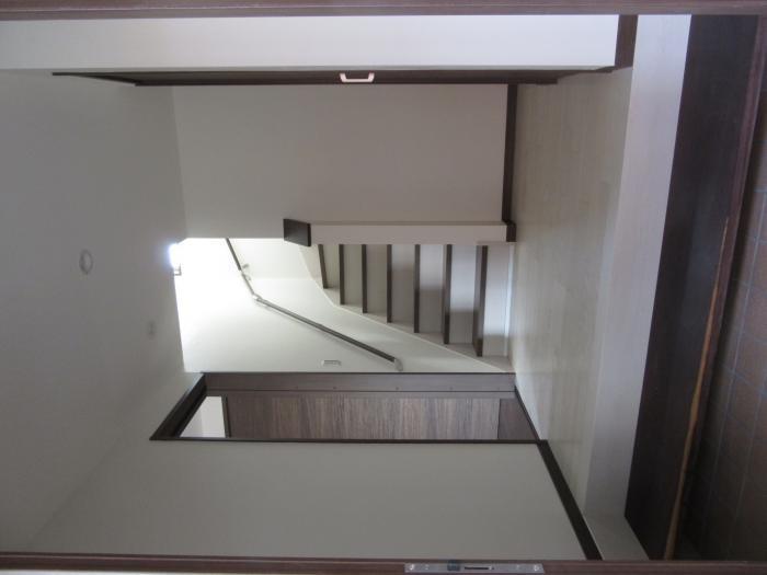 ゆとりのある玄関ホール。敷板は銘木のタガヤサンで南洋材の無垢一枚板です。※写真が横になり失礼します。