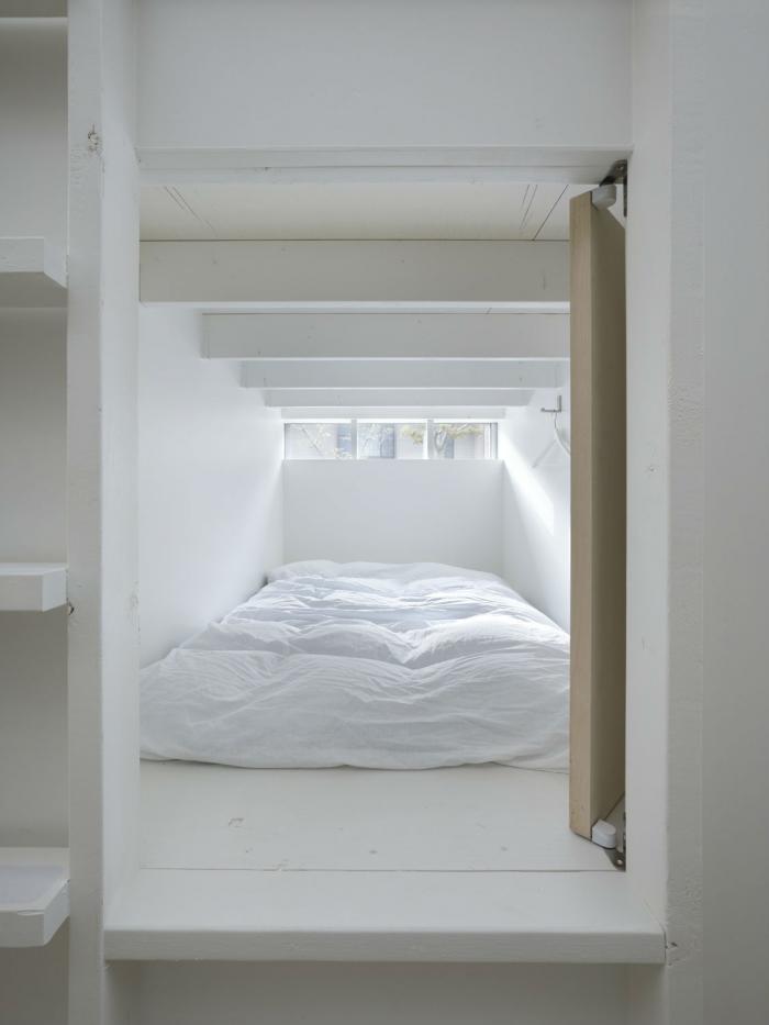 シンプルな空間構成だが、ハイサイドライトからの自然光に照らされた広めの通路は宿泊客同士が語りあったり、寡黙な旅を楽しんだり、それぞれの望む距離感を実現します。