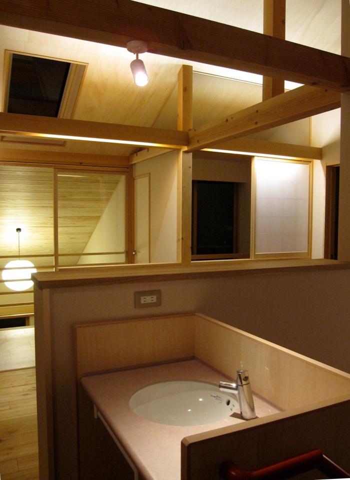 1階の茶の間上と2階図書コーナーがつながり、1,2階の気配がわかります。