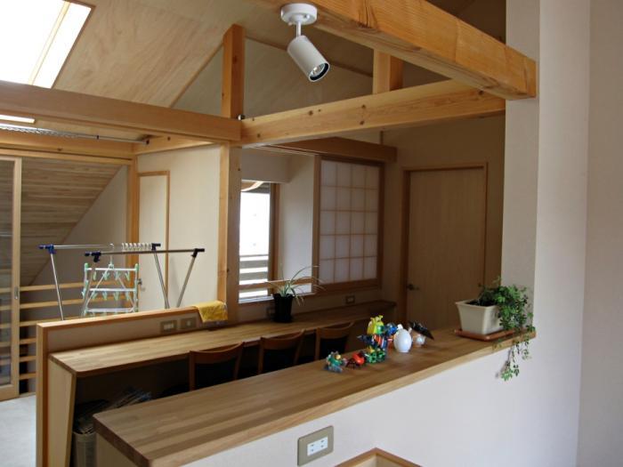 家事コーナーと学習スペース用カウンターがダイニングまでつながります。