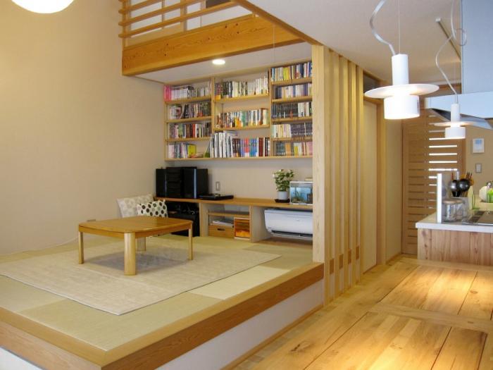 住まい手の希望でLDKの一角に小上がりの茶の間をあつらえました。