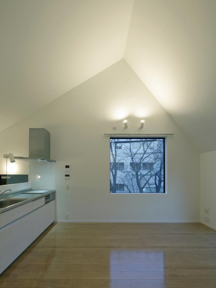賃貸はまずターゲットの設定とプログラムが大切。そこで計画地を守備範囲とする不動産会社をリストアップし、順次ヒヤリングして企画力を比べ、管理運営まで含めたパートナーを選んだ。選んだパートナーと打ち合わせてターゲットとプログラムを決め、設計者として競争力となるコンセプトを提案した。コンセプトは、「限られたスペースの中で空間の広がりやつながりをつくること」である。