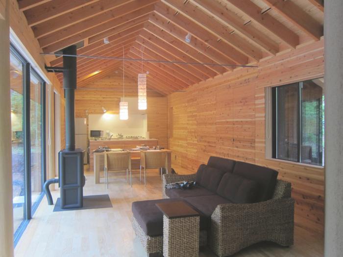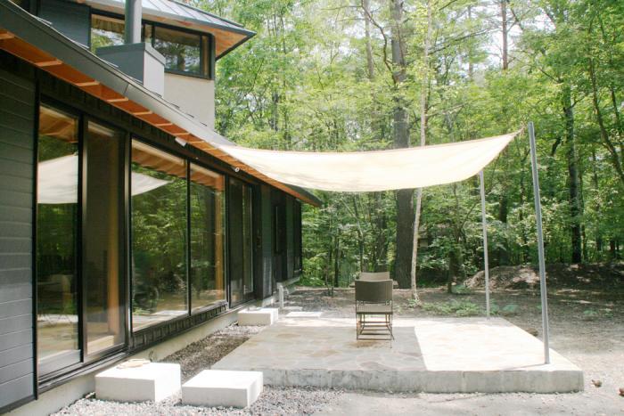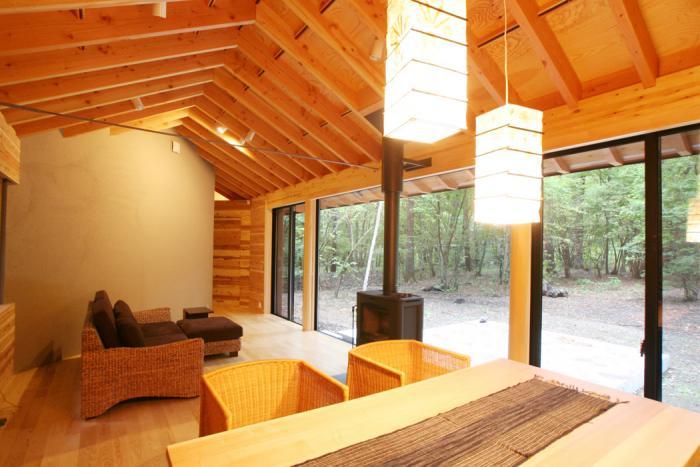 依頼主は子供のころから夏を過ごした北軽井沢の環境に愛着があった。林の中というこの環境を生かしたい。また四季を通じて使えることを希望。