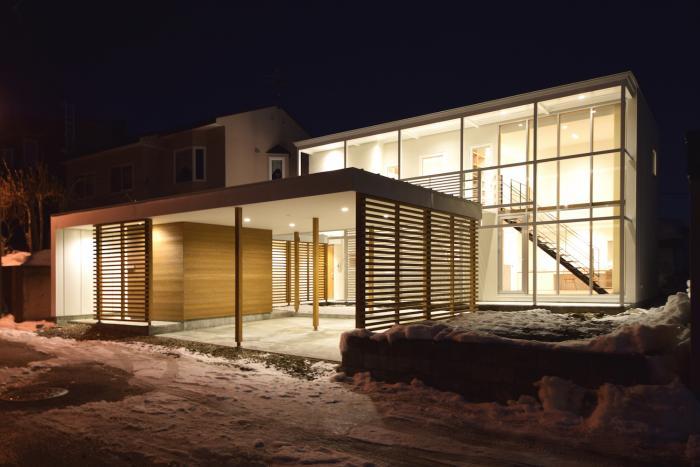格子の家夜景。