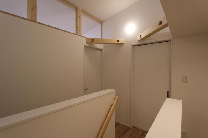 中廊下となる二階ホールに欄間ガラスより光を呼び込む計画としました。