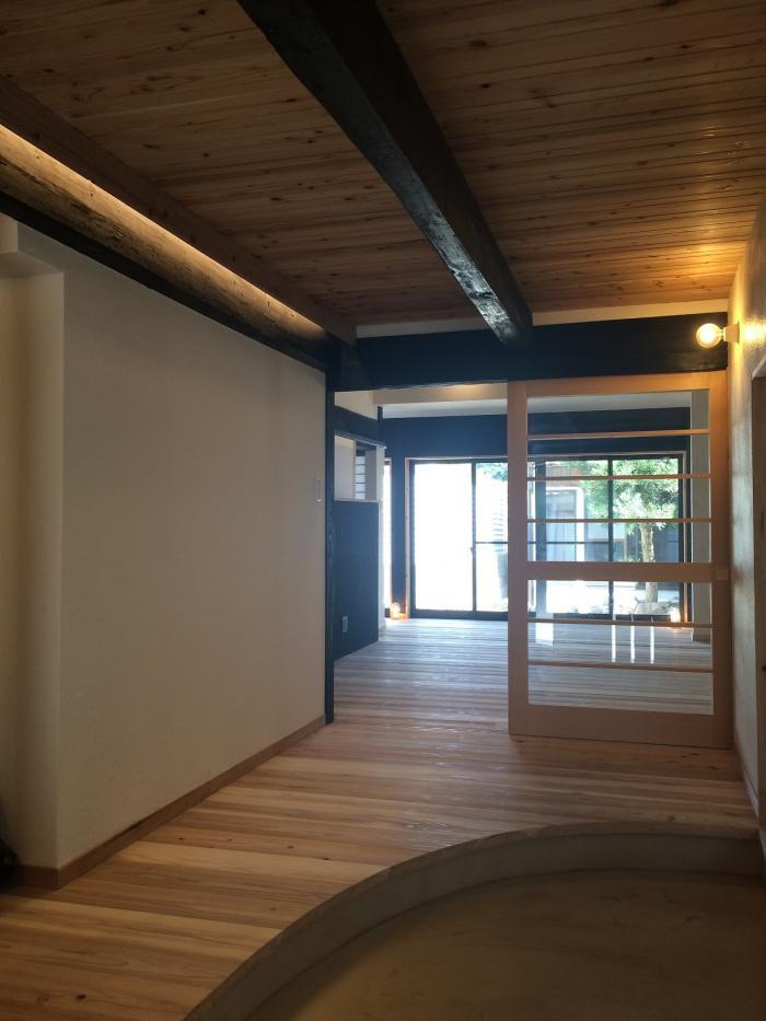 有馬街道には現在も築100年を超す建物が点在している地域です。この物件は築年数不詳。足元の補強から工事は始まり古材、古建具の染み抜きなどを経てリノベーション完成しました。