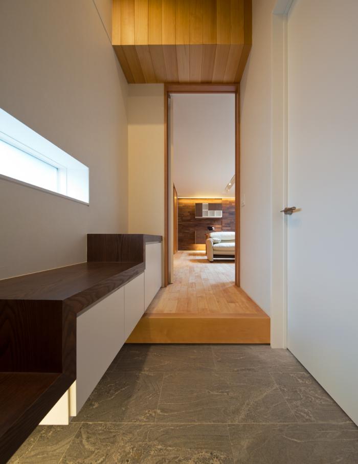 「回廊の家」は福岡都心部の住宅やマンション等の立ち並ぶ建築密集地の中に計画された住宅です。三方を住宅に囲まれ、余裕のない敷地面積の中で、プライバシーを維持しつつ、外部を取り入れるかが、今回のポイントになりました。